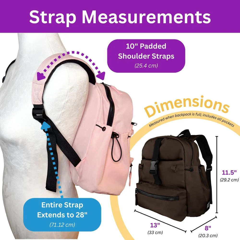 Review shoulder strap and backpack measurements before ordering:
